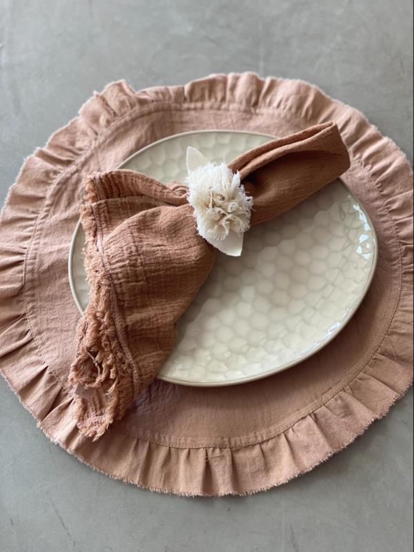 REDONDO/40 CM DIAMETRO/TELA TUSSOR DOBLE/COLOR 1 CRUDO/ 2GOLDEN ROSE