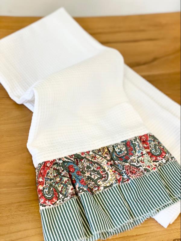 PAÑO CON VOLADO/VOLADO AZUL DE JEAN, VOLADO VERDE TELA RAYAS VERDE/