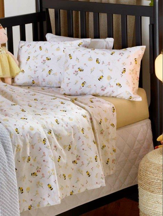 100% ALGODON// SABANA DE ARRIBA 90CM X 140CM // SABANA AJUSTABLE: 60 CM X 120CM (PARA COLCHON HASTA 10 CM DE ALTO)// FUNDA DE ALMOHADA: 30 CM X 40 CM //